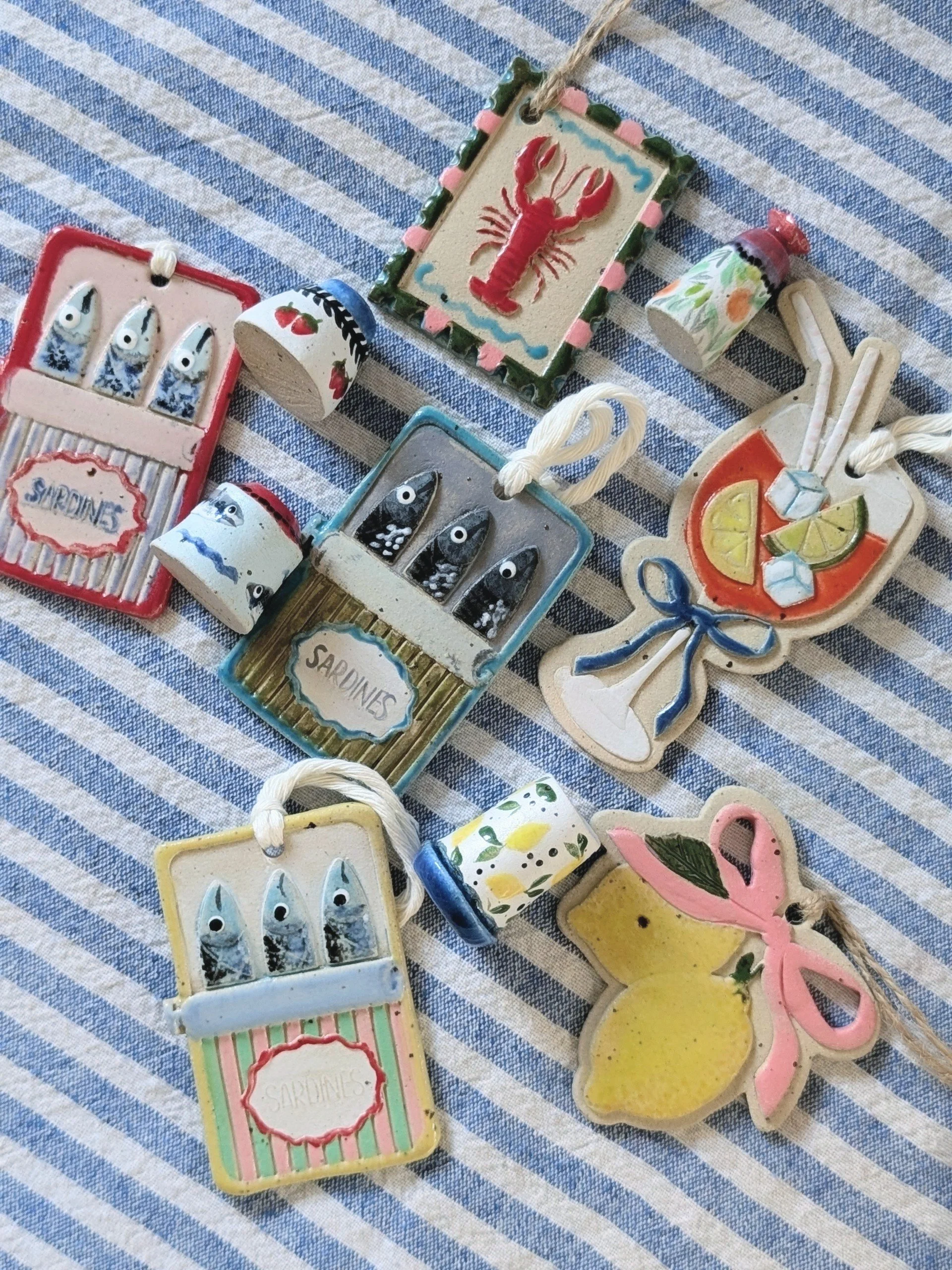 These hand-cut stoneware ornaments are lovingly made in my studio using recycled clay scraps — beautiful and sustainable in equal measure.