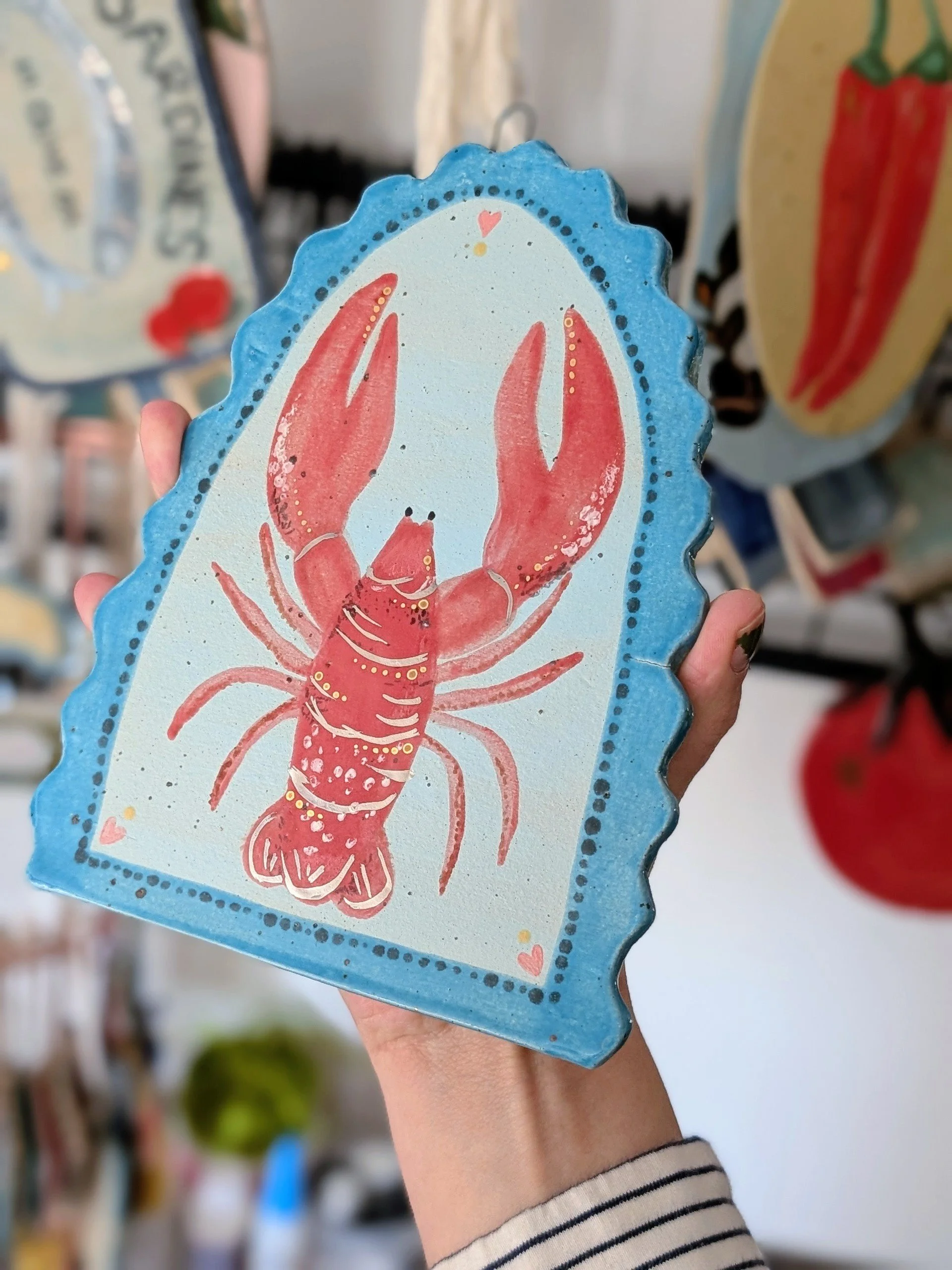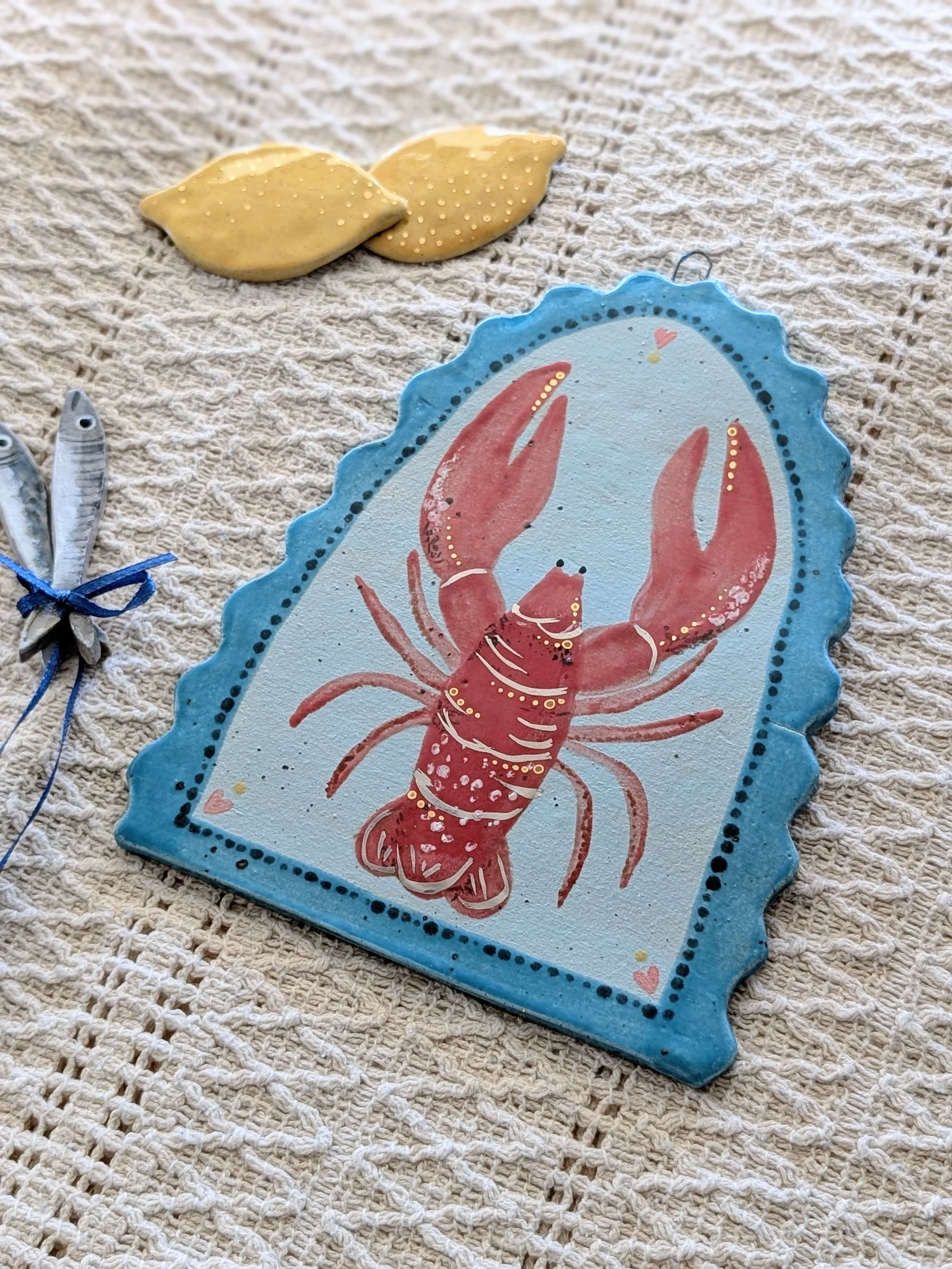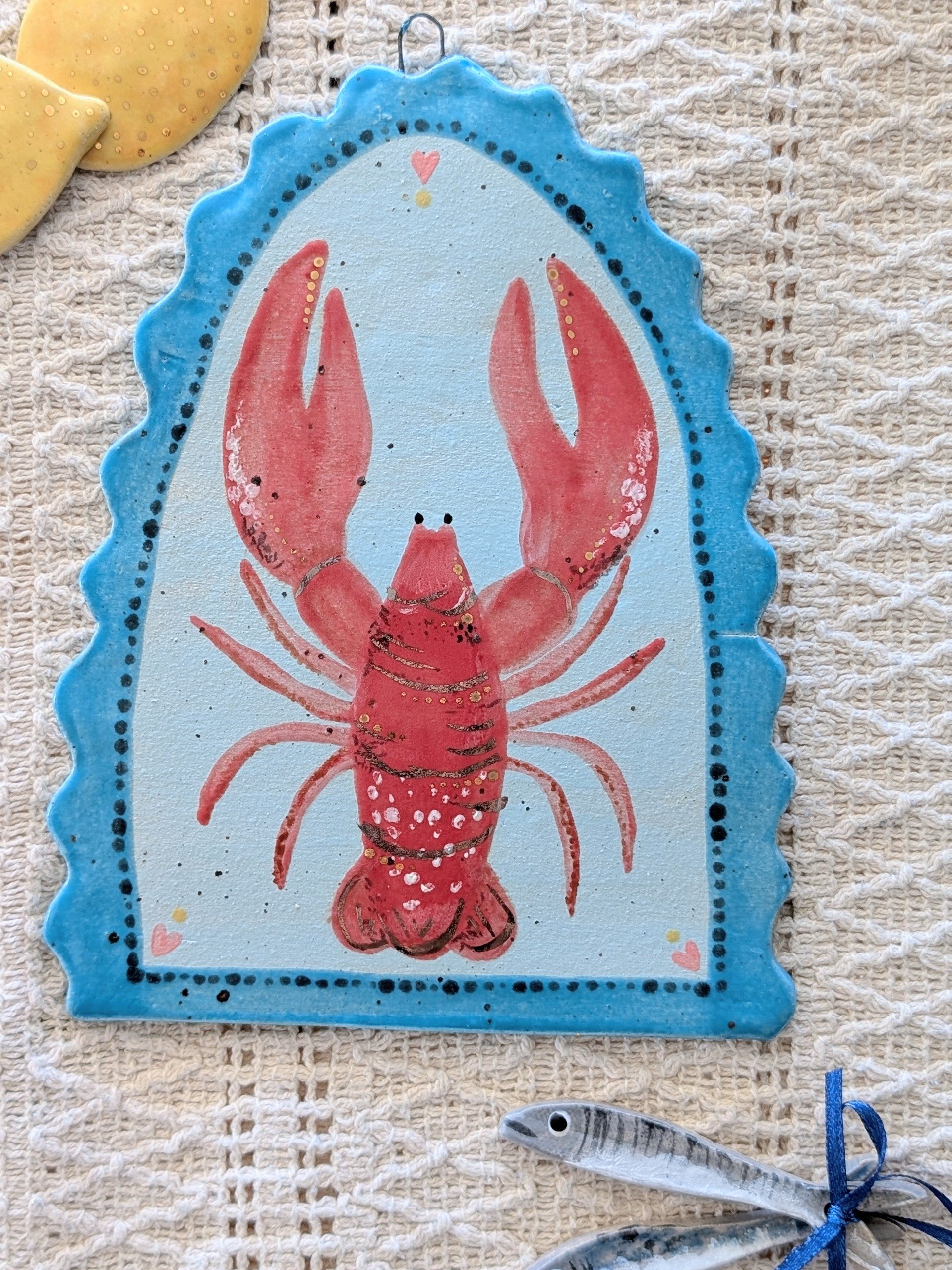 The lobster wall hanging features subtle 22ct gold lustre highlights, catching the light beautifully and additional platinum lustre detail.