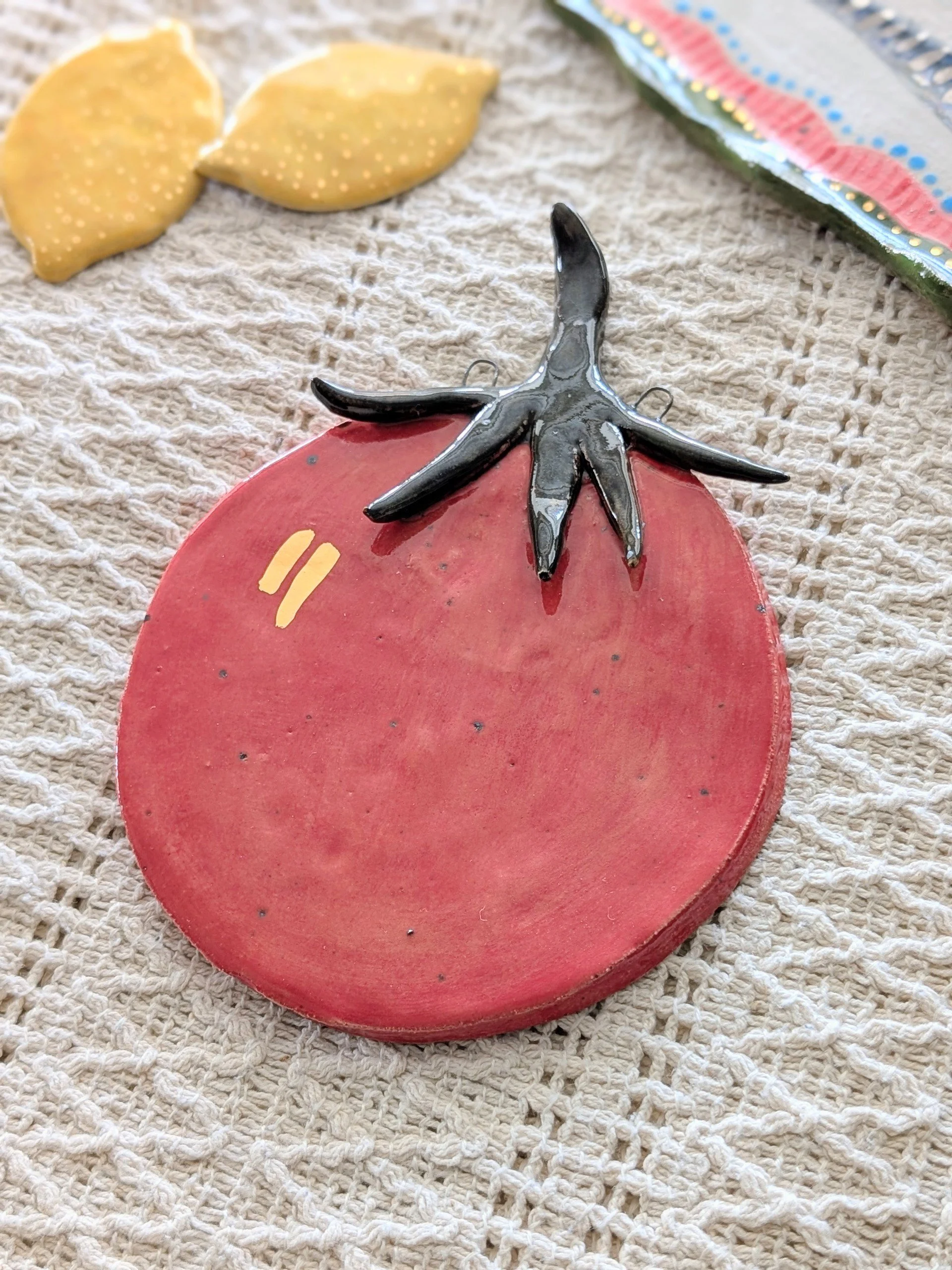 The tomato features delicate 22ct gold lustre highlights, catching the light beautifully and adding a subtle touch of sparkle.